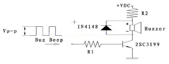 第三,确认PCB上的信号源的功率是否足够饱和导通蜂鸣器功放部分的三极管,如不够必须调小附图1中R1的阻值,R2的阻值必须小于蜂鸣器的电阻值或者为0欧;